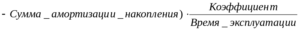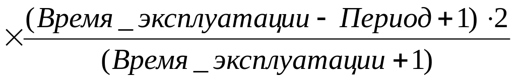 Сумма амортизации имущества за учетный период соответствующая результату функции АМР, умножается на коэффициент, который зависит от порядкового номера (i) учетного периода. При этом сумма этих коэффициентов равна нормативному количеству периодов эксплуатации имущества: