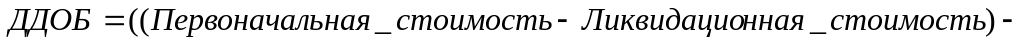 Функция ДДОБ вычисляет сумму амортизации за любой указанный период. Расчет ведется по методу увеличенного процента амортизации со снижающегося остатка стоимости имущества по формуле: