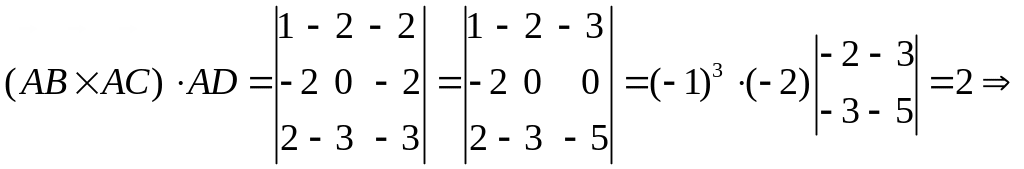 Відзначимо такі властивості мішаного добутку: 1) вектори компланарні тоді і тільки тоді, коли іх мішаний добуток дорівнює нулю, тобто компланарність