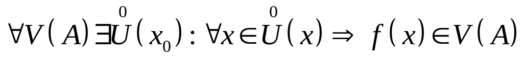 За допомогою логічних символів означення скінченної границі функції у точці записується таким чином: |