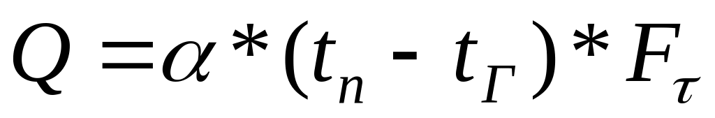 α = 10 + 0,06*tп Вт/(м2*К), где tп,— температура поверхности стенки, °С.