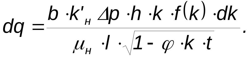 Выражение для элементарного расхода воды, поступающей в -й пропласток, можно написать и иным образом, рассматривая согласно рис. 8. характер перемещения со времени фронта вытеснения нефти водой в -м пропластке и распределения в нём остаточной нефтенасыщенности пласта связанной водой. Имеем: