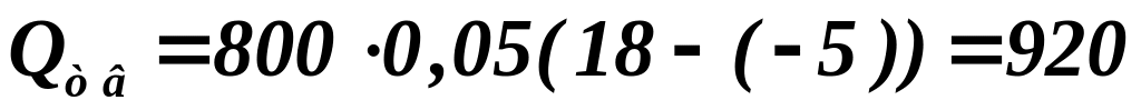 1) За формулою (3) розраховуємо теплові втрати будівлі, приймаючи питомі втрати теплоти будівлі q=0,05 кВт/(м3•К)