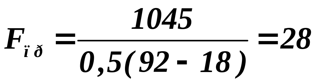 3) Розраховуємо площу поверхні опалювальних приладів за формулою (4). При цьому коефіцієнт теплопередачі опалювального приладу приймаємо з діапазону Кпр = (0,4…0,6) кВт/(м2•К)