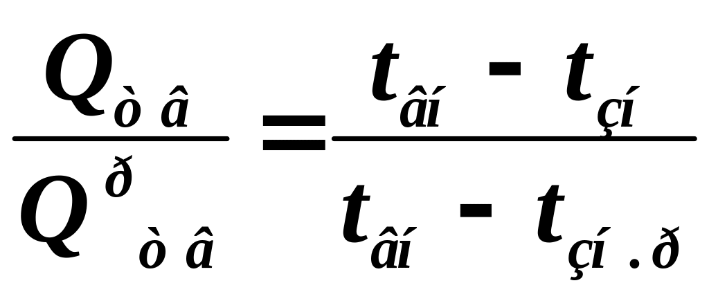 Відношення витрати теплоти при вибраній температурі зовнішнього повітря до максимальної витрати теплоти при розрахунковій температурі зовнішнього повітря визначається виразом: