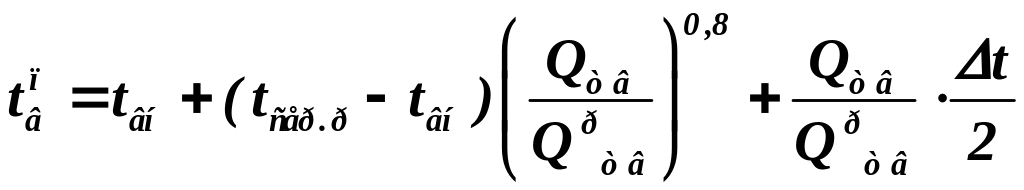 9) Температуру «прямої» і «зворотної» води розраховуємо за рівняннями (8) і (9)