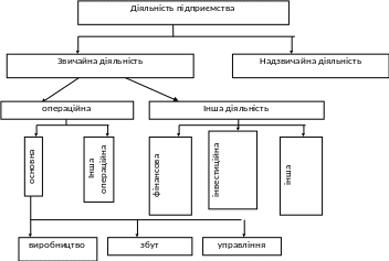 Надзвичайна діяльність – такі операції або події, які відрізняються від звичайної діяльності і не відбуваються часто або регулярно. Звичайна діяльність – будь-яка діяльність підприємства, а також операції які її забезпечують або виникають в наслідок здійснення такої діяльності. Звичайна діяльність поділяється на: