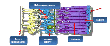 Изучите по таблицам, атласу, отдельным рисункам строение сетчатки глаза. Схематично зарисуйте микроскопическое строение зрительной части сетчатки, сделав соответствующие обозначения.