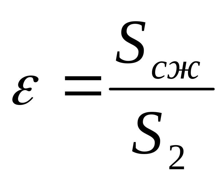 Внезапное сужение трубопровода. Внезапное сужение всегда вызывает меньшую потерю энергии, чем внезапное расширение при таком же соотношении площадей (рисунок 1.2). Потеря энергии обусловлена трением жидкости при входе в узкую трубу и потерями на вихреобразование. Учитывая, что потери энергии обусловлены в основном, расширением струи (увеличением струи от Scж до S2) коэффициент ξ определяется по формуле