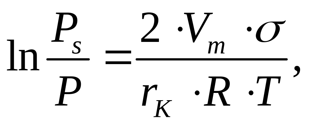 rК – середній радіус Кельвіна (радіус циліндра, що відповідає даному значенню Ps/P);