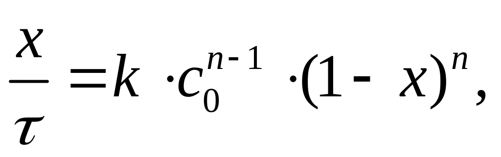 Високі лінійні швидкості газів у циклі і малі ступені перетворення в диференціальному шарі каталізатора зумовлюють практичну відсутність або ж мінімальні градієнти концентрацій і температур у шарі. Реактор у цьому випадку працює в режимі, аналогічному повному змішуванню (тобто без зовнішньо дифузійних гальмувань). Пряме вимірювання швидкості реакції можна проводити у кожному досліді тривалістю τ за значною різницею концентрацій суміші, що надходить у циркуляційний контур і виходить із нього, що різко зменшує вплив похибок аналізу на точність визначення швидкості реакції порівняно з проточними диференціальними реакторами. Кінетичні залежності з урахуванням характеристичного рівняння реактора ідеального змішування безперервної дії (РІЗ-Б), що працює в установленому режимі, матимуть вигляд: