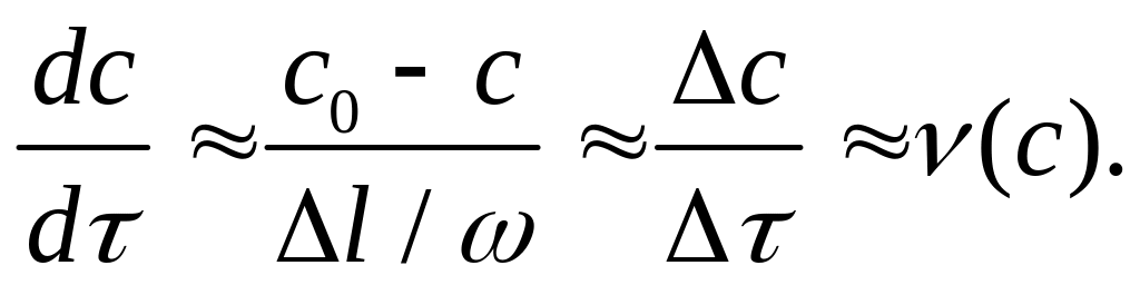 У проточних диференціальних реакторах безпосередньо визначають швидкість реакції. Для створення диференціального реактора при дослідженні гетерогенно-каталітичних реакцій за участю газоподібних реагентів застосовують тонкий шар каталізатора (Δl) при великих швидкостях прокачування через нього реакційної суміші, завдяки чому зміна ступеня перетворення у шарі невелика при будь-яких змінах в експерименті початкових концентрацій реагенту с0. Тоді кількість (або зміна концентрації) перетвореної речовини може слугувати мірою швидкості реакції: