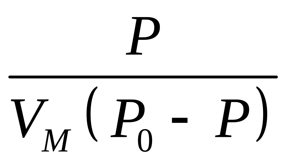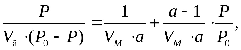 Рівняння взаємозв’язку об’єму газу Vr, адсорбованого за ізотермічних умов, з його рівноважним тиском Р описується рівнянням БЕТ: