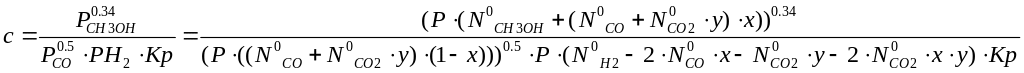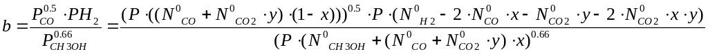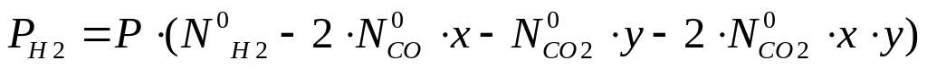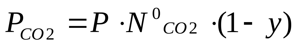Виводимо рівняння для розрахунку тиску кожного компоненту системи через ступені перетворення по СО (реакція (1) – позначимо через х) і СО2 (реакція (2) – позначимо через у).