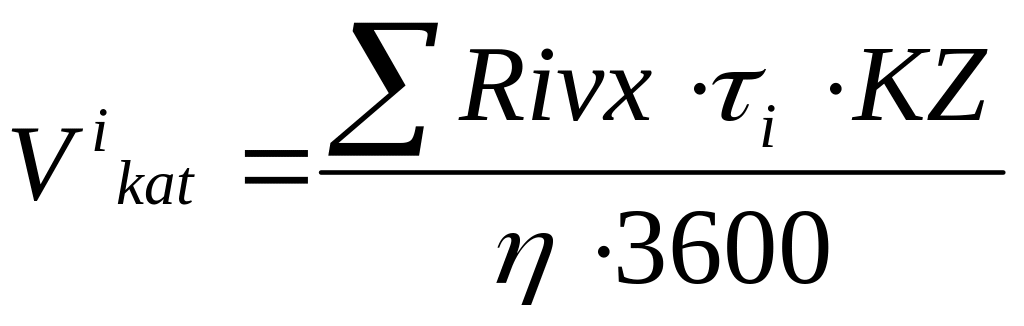 Знаючи час контакту, можна розрахувати об’єм каталізатора на кожній з полиць з врахуванням ступеня використання поверхні η промислового каталізатору і коефіцієнту запасу KZ.