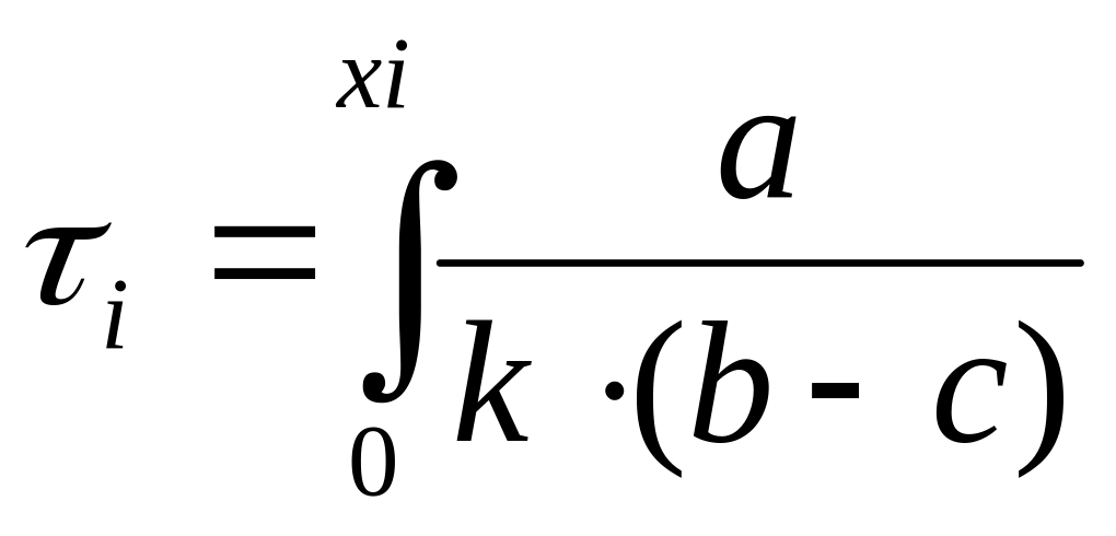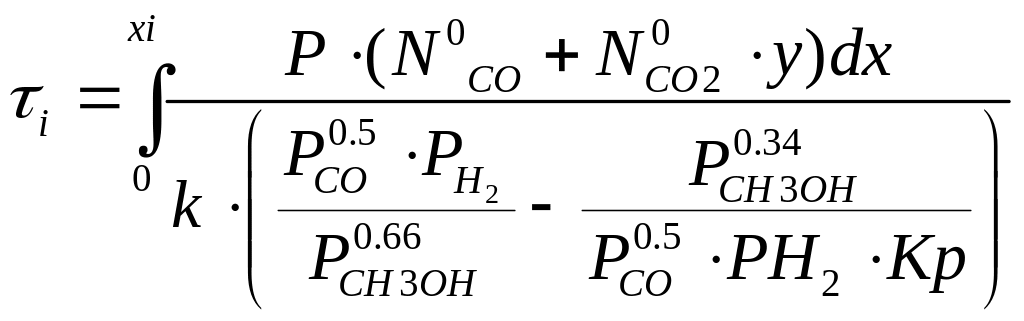 Інтегруючи кінетичне рівняння по х і використовуючи дані матеріального балансу (склад газу на вході і ступені перетворення компонентів системи на кожній з полиць колони) та теплового балансу (температури на вході кожної полиці), можна розрахувати час контактування на кожній з чотирьох полиць при умові протікання процесу в кінетичній області: