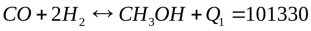 При синтезі метанолу перебігають наступні реакції, які враховуються при розробці математичної моделі процесу: