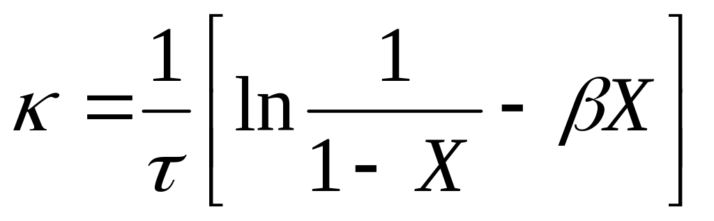где X- средняя глубина превращения бензина в реакционном змеевике; k - константа скорости реакции, с-1; β - коэффициент самоторможения реакции.
