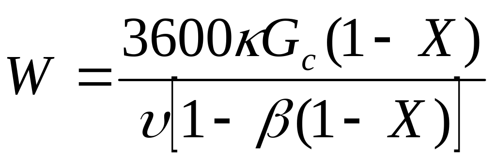 где υ - объем реакционной смеси, проходящей через реактор в единицу времени (в рабочих условиях).