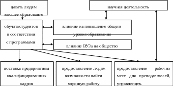 Функции объекта ВУЗ: давать людям высшее образование, обучать студентов в соответствии с программами, влияние ВУЗа на общество, влияние на повышение общего уровня образования, научная деятельность, поставка предприятиям квалифицированных кадров, предоставление людям возможности найти хорошую работу, предоставление рабочих мест для преподавателей, управленцев.