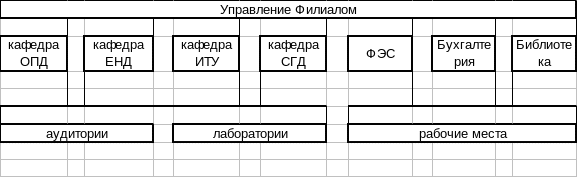 Система в целом и подсистемы. За систему приняли ВУЗ и подсистема, (далее «Филиал»), который является обособленным структурным подразделением ВУЗа и осуществляет подготовку специалистов с высшим профессиональным образованием, а также повышение квалификации и переподготовку кадров.