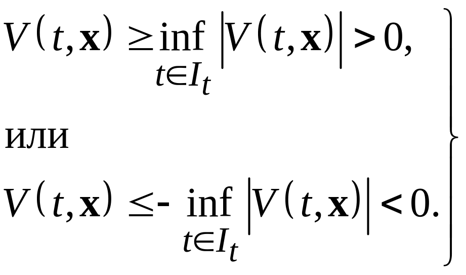 Такая запись (1.4.14) означает, что функция Ляпунова - положительно определенная и допускает сильный БМВП при .■