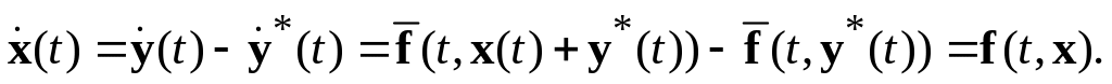 Таким образом, привели задачу исследования устойчивости произвольного известного решения системы (1.3.1) к задаче исследования устойчивости тривиального решения (положения равновесия) так называемой «приведенной» системы (1.3.2) (по Ляпунову она называется также системой уравнений возмущенного движения, а решение - невозмущенным движением).
