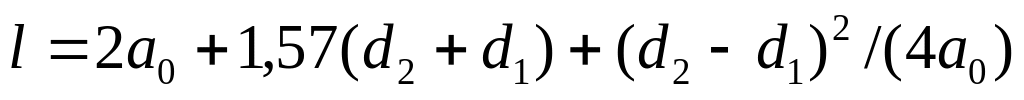 Округляем длину ремня до стандартного ближайшего значения по ряду длин ремней, совпадающему с рядом нормальных линейных размеров.Ra20. принимаем L=630 мм. По таблице 11.1 проверяем соответствие принятого значения диапазону длин ремней профиля УО.