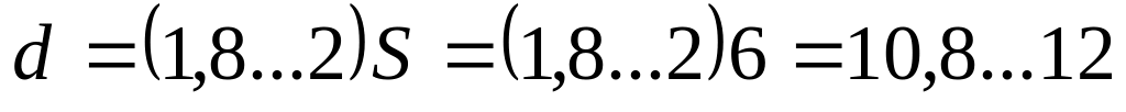 d=1,2·3+4≈8 мм; t2=1,5·8=12 мм; t1=2·8=16 мм; t=3·8=24мм.