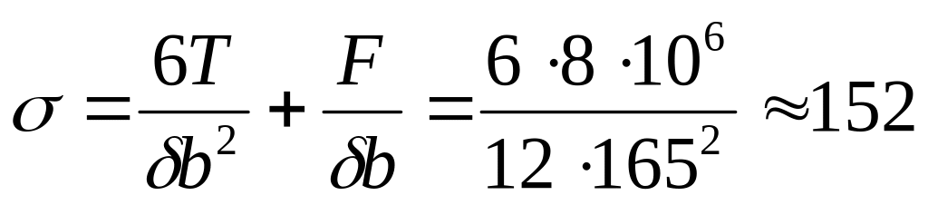С учетом нагрузки F принимаем b=165 мм. Проверяем прочность при суммарной нагрузке: