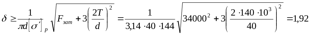 толщина стенки трубы δ=5 мм, T=104Нм,