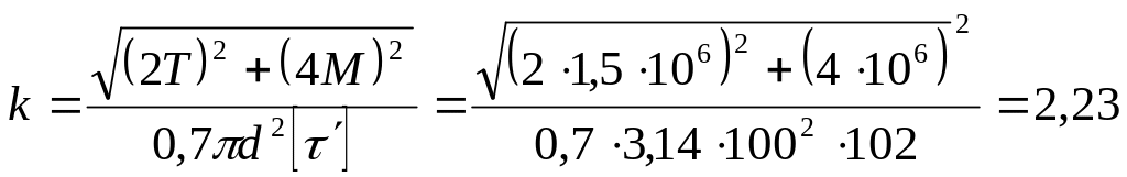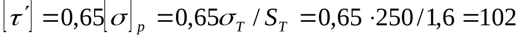[τ']=0,6[σ]р =0,6·133·0,11=8,75 МПа.