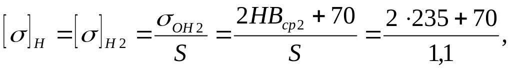 4.1. Визначаємо контактні напруги, що допускають, по середній твердості зубів НВср більш м'якого колеса при коефіцієнті запасу S, рівним 1, 1 (ДЕРЖСТАНДАРТ21354-87).