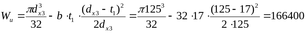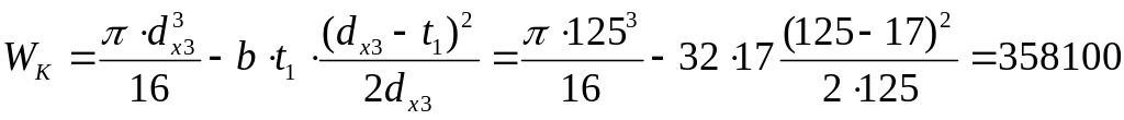 17.2.Перетин Х має з урахуванням шпонкового паза, моменти опору вигину й крутінню: