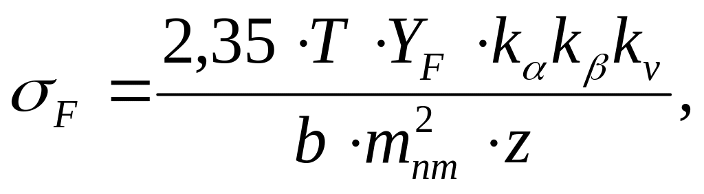 6. Для найбільш слабкої ланки визначити напруги вигину в ніжці зуба. Слабка ланка визначається мінімумом співвідношення: