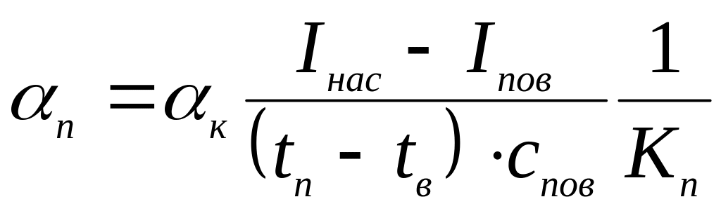 де αк – коефіцієнт тепловіддачі конвекцією, Вт/м2 К;