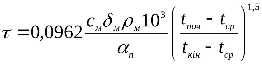 де τ – тривалість процесу охолодження, с ;