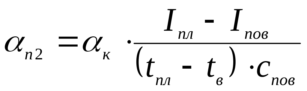 Визначив коефіцієнт тепловіддачі αк, ентальпію плівки води Iпл, ентальпію повітря Iпов, температуру по вологому термометру tв та прийнявши питому теплоємність повітря спов = 1 кДж/(кг К) рохзраховуем коефіцієнт тепловіддачі αп2 п.2.