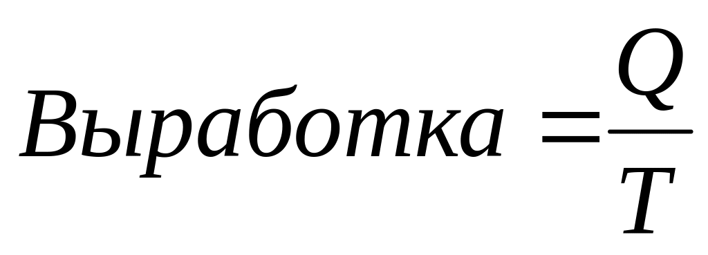 Выработка представляет собой количество продукции (Q), производимой в единицу рабочего времени (Т), или приходящейся на одного среднесписочного работника в месяц, квартал, год.