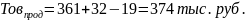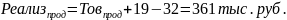 По данным таблицы определим размер товарной продукции из формулы для нахождения реализованной продукции.
