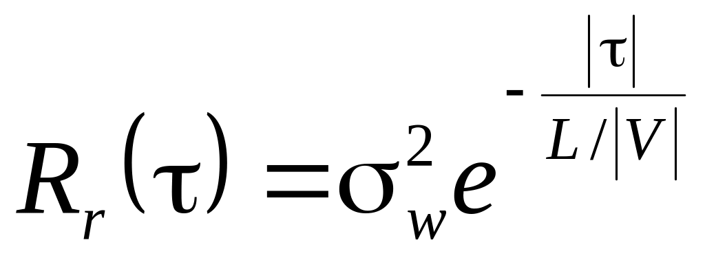 де L - масштаб турбулентності, що характеризує довжину інтервалу, на якому зберігаються кореляційні зв'язки випадкового процесу, а r=V - шлях, пройдений літаком, а V - швидкість його польоту. При цьому розміри області, в якій випадкові складові швидкості вітру корельовані, для подовжньої і поперечної відносно напряму польоту літака складових визначаються співвідношеннями