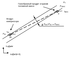 Рис. 9. Процесс в h,s-диаграмме изменения давления воздуха в камере сгорания