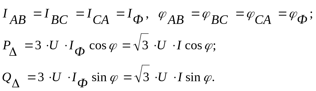 Cума лінійних струмів у такому колі при будь-яких значеннях фазних навантажень завжди дорівнює нулю, у цьому неважко переконатися, склавши ліві і праві частини даних рівнянь.
