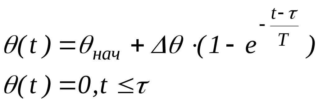 где Δθ = θуст- θнач – приращение выходного сигнала (температуры), θуст – установившееся значение температуры, θнач – начальное значение температуры.