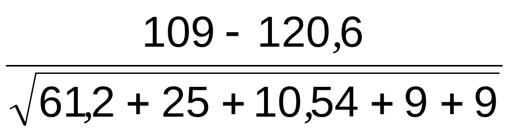 3. По полученным результаты расчетов оцениваем вероятность выполнения комплекса работ за Тд = 109 дней (детерминированная продолжительность критического пути). Для этого находим значение аргумента t нормальной функции распределения Ф(t) по формуле (12)