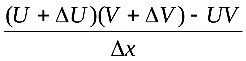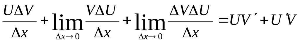 Если 2 функции U и V дифференцированы в некоторой точке, то тогда ф-я, равная Y=U+V, также будет иметь производную, равную Y’=U’V+UV’