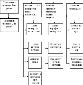 Рис. 6.6. Система чинників, які впливають на питомі витрати