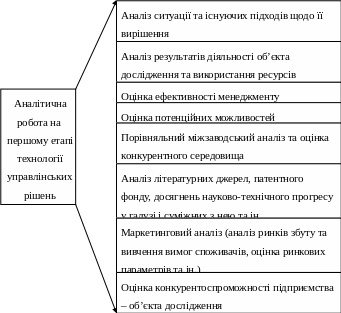 Рис. 9.3. Зміст аналітичної підтримки першого етапу технології управлінських рішень