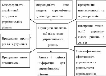 Основні вимоги, правила або принципи аналітичної підтримки управлінських рішень [30] надані на рисунку 9.2.