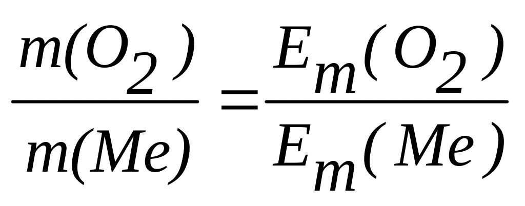 Відповідно з законам еквівалентів хімічна кількість еквівалента металу дорівнює хімічній кількості еквівалента кисню: